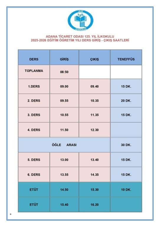 Okulumuzun 2025-2026 eğitim öğretim yılındaki zaman çizelgesi bu şekilde uygulanacaktır.